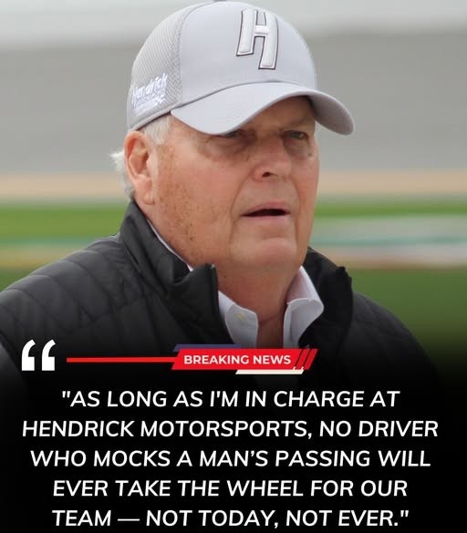 As Hendrick put it succinctly, “No driver who mocks a man’s passing will ever take the wheel for our team — not today, not ever.” Those words may well echo across NASCAR for years, a defining moment in the sport’s history and a stark reminder that integrity remains the ultimate checkered flag.
