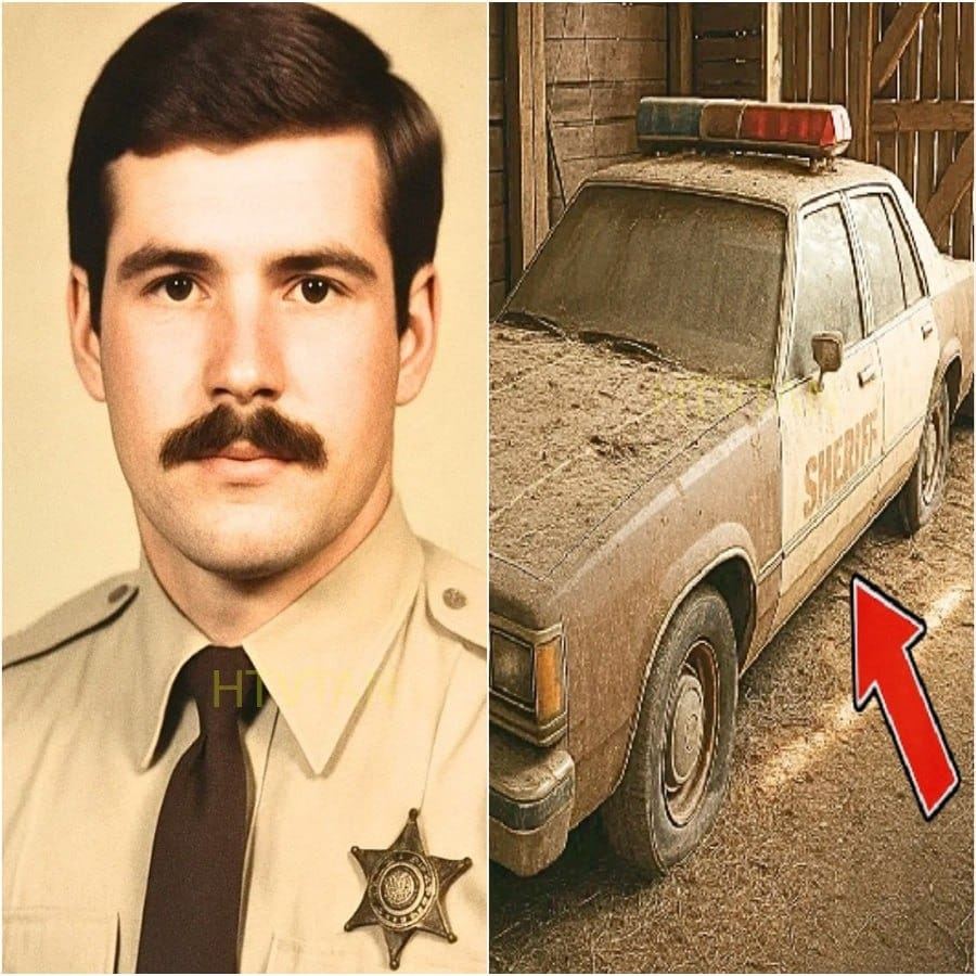 The morning light cut through the gaps in the weathered boards as Jake Morrison hauled open the old barn doors on the Hartwell farm. He’d owned the place for three months but hadn’t explored the back storage barn—just another relic on County Road 47. Then he saw it: the squared-off silhouette of a vehicle under a moth-eaten canvas. He pulled the cover back and froze. A rusting Milbrook County Sheriff patrol car—light bar, badges, the works—sat entombed in dust. The driver’s door was ajar; a diner mug, a clipboard, and a half-eaten sandwich lay inside like time capsules. Jake dialed 911 with shaking hands.